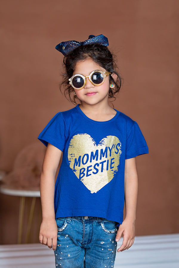 Zochee Mommy's Bestie Printed Girls T-shirt-KTST-2155-Royal Blue