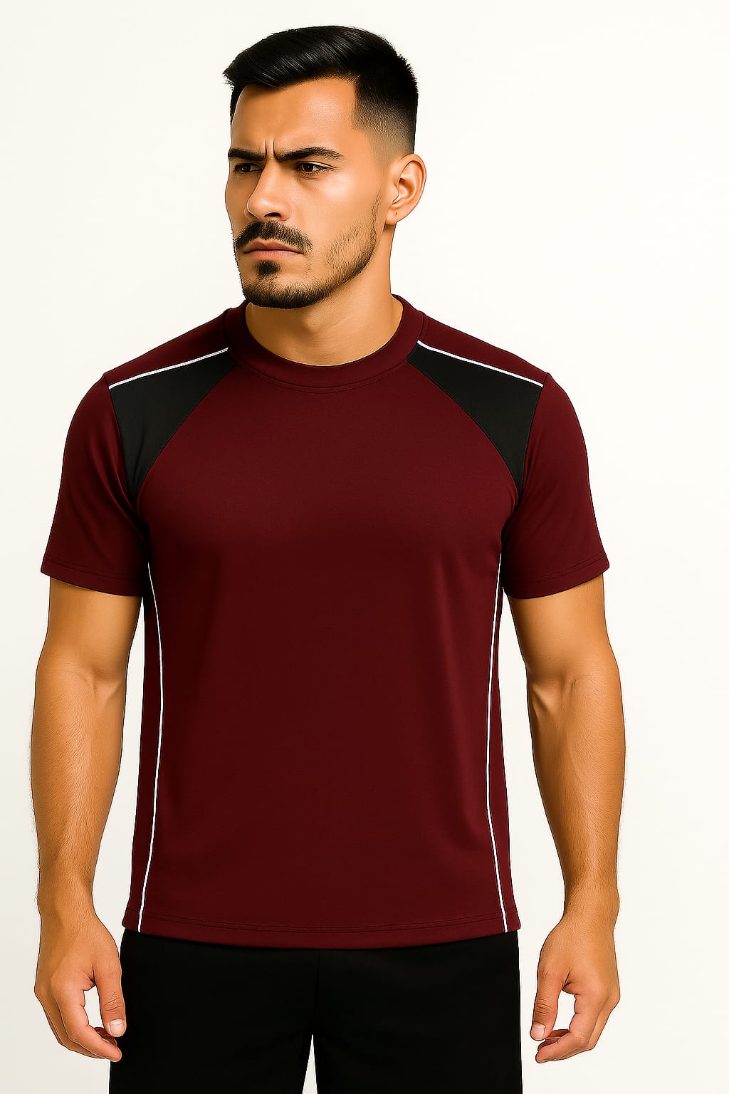 2698-Encore ZR-10 Activewaear T-Shirt Men-Burgundy Black