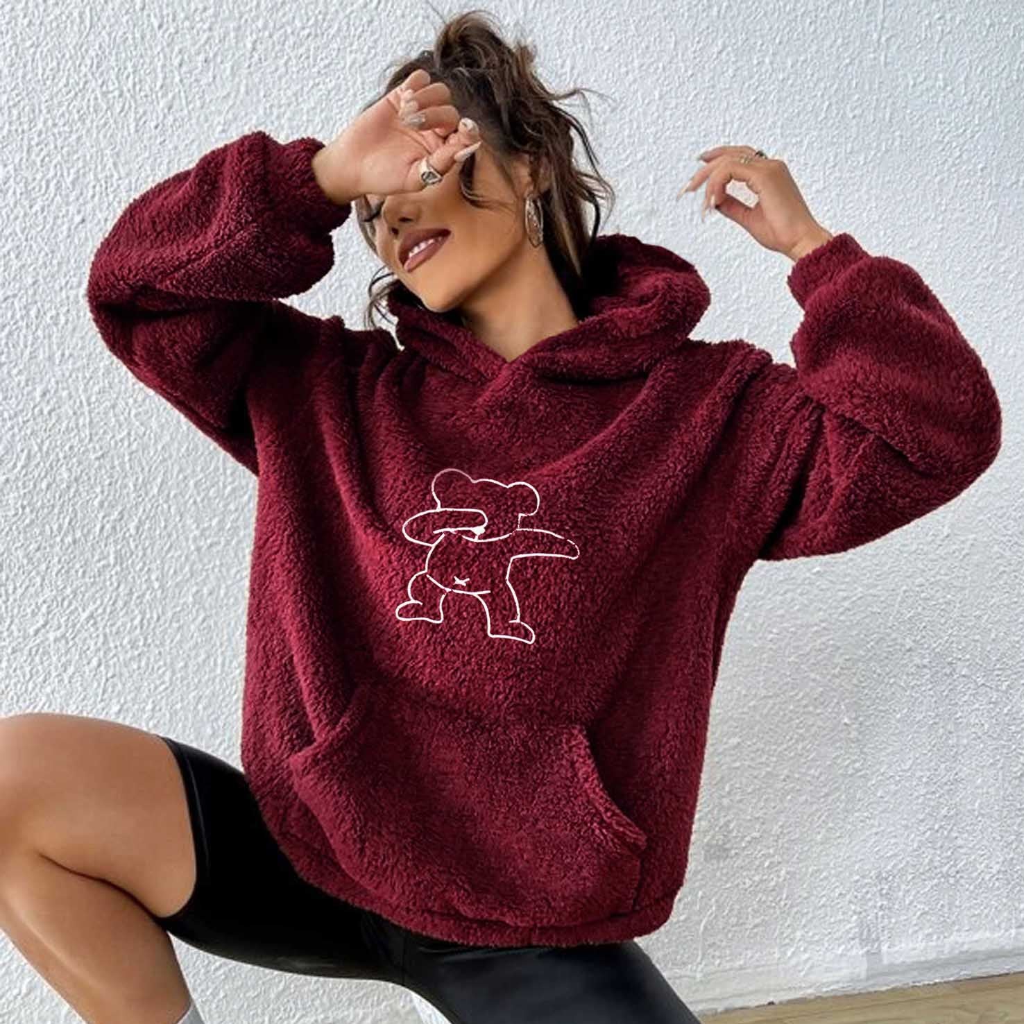 Teddy Bear Embroidered Furr Sherpa Hood For Women-2303