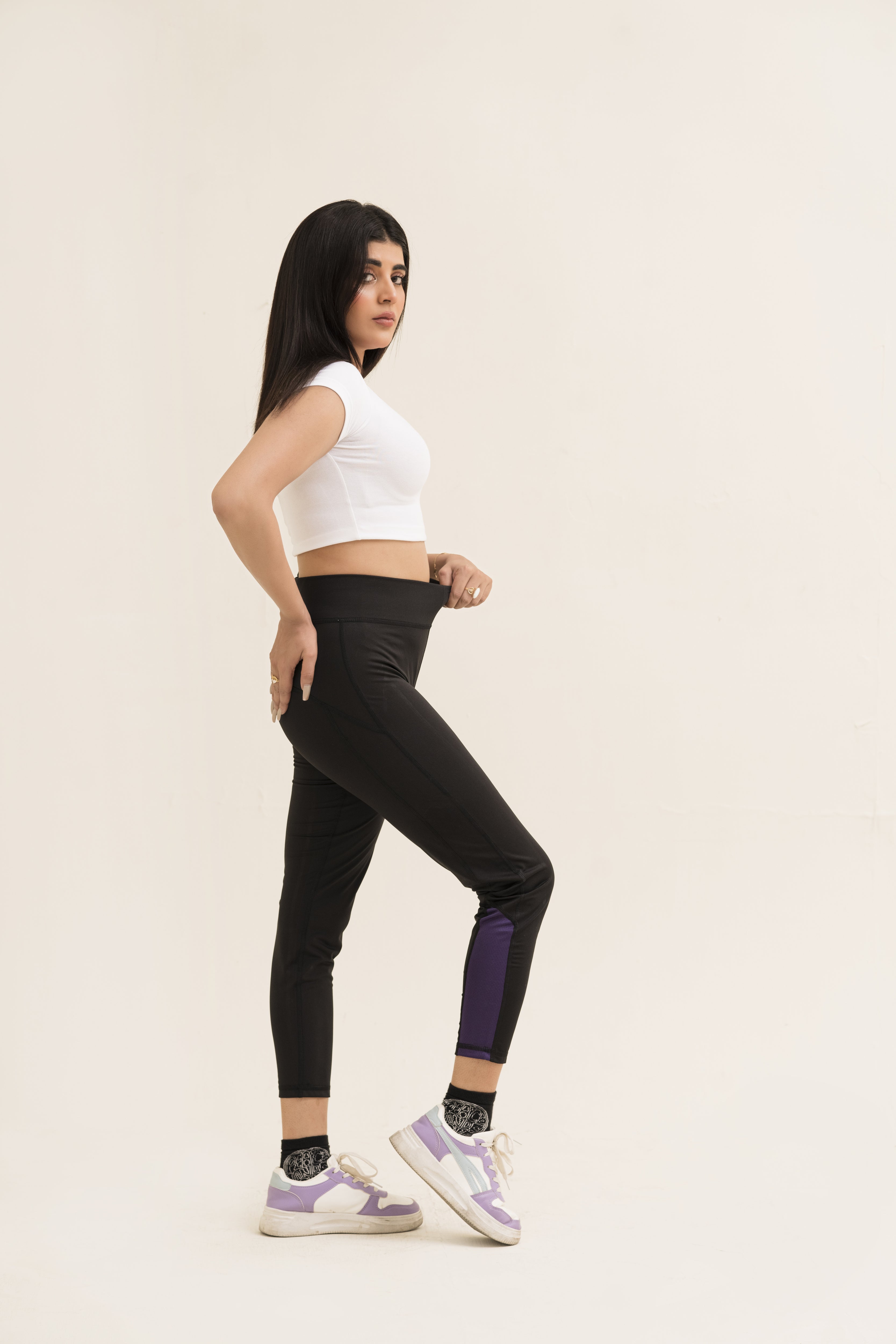 Falcon Activewear Leggings For Gym/Yoga-2517-Black Purple