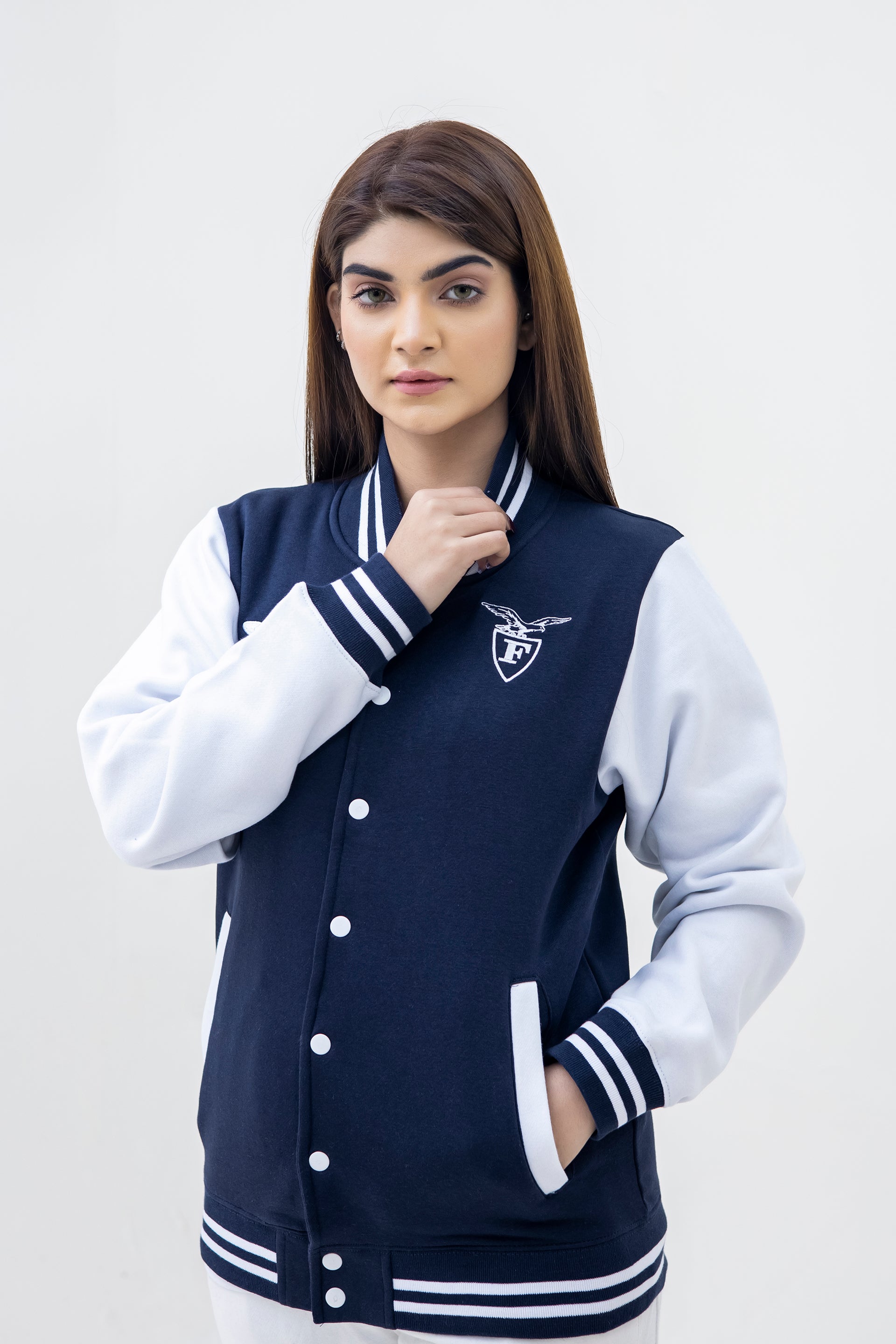 Elevate your casual style with thisΒ Β Varsity Jacket. Featuring a timeless design with a navy-blue body and white sleeves, this jacket...