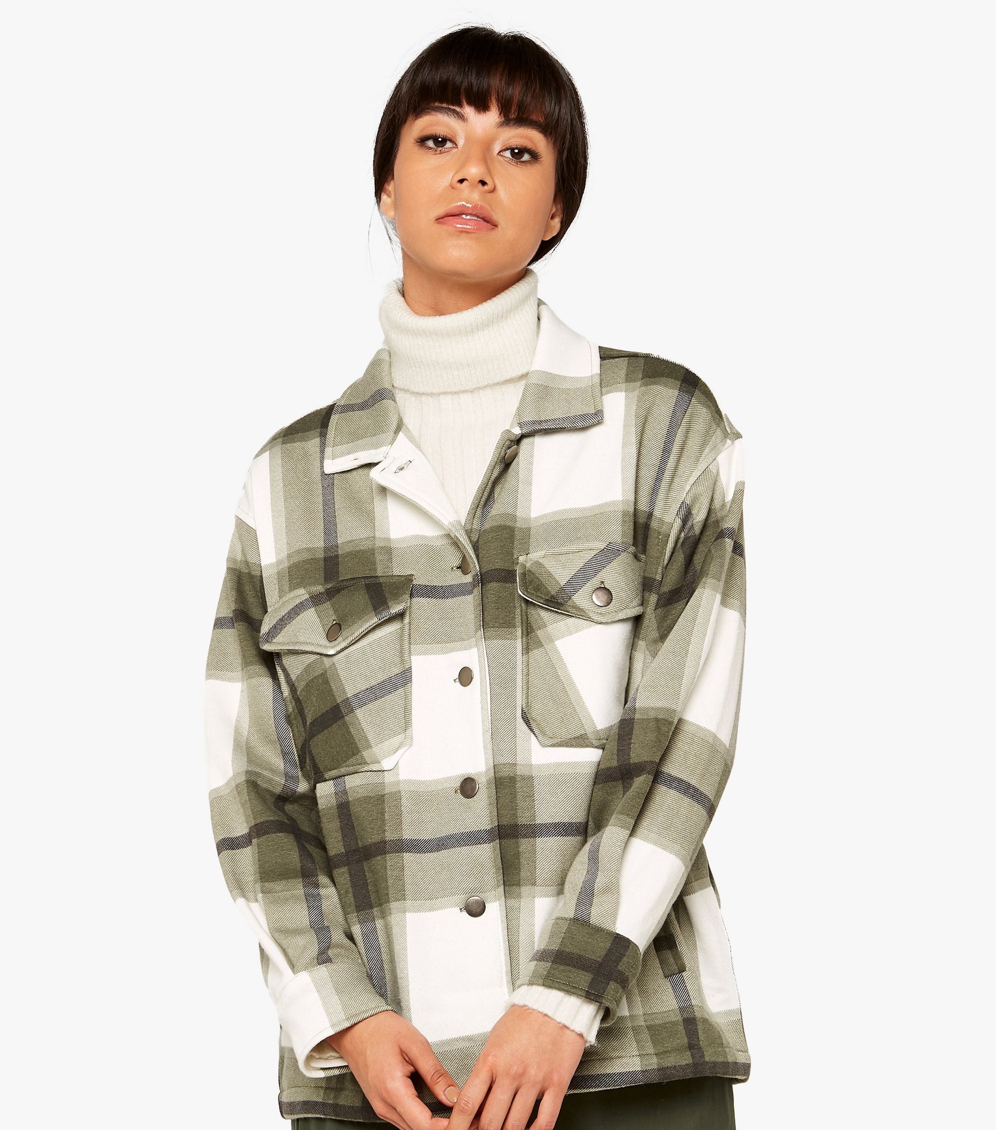 Product Type: Check Fleece Shacket Check print Collared neckline LongΒ sleeves Double-pocket front Button-up fastening Soft Fleece fabric Baggy fit...