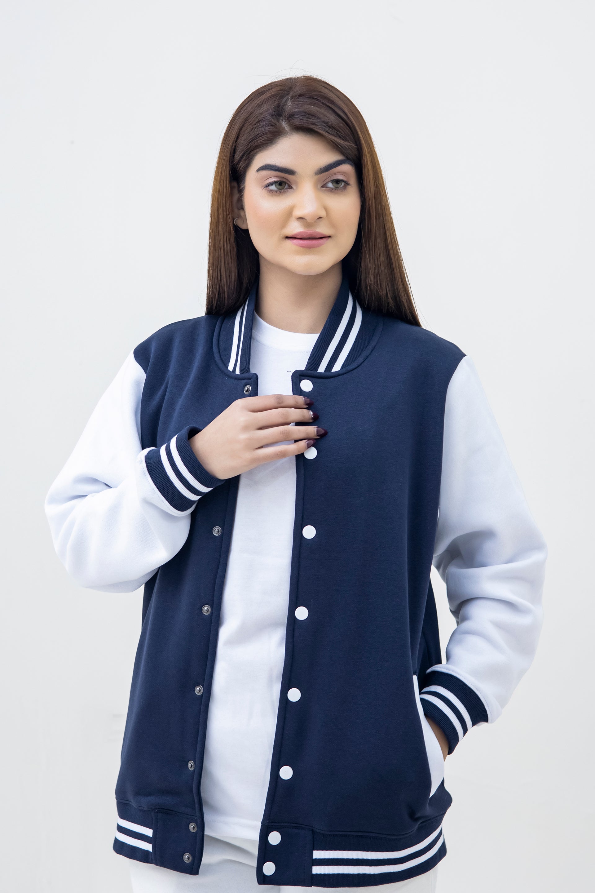 Elevate your casual style with thisΒ Β Varsity Jacket. Featuring a timeless design with a navy-blue body and white sleeves, this jacket...