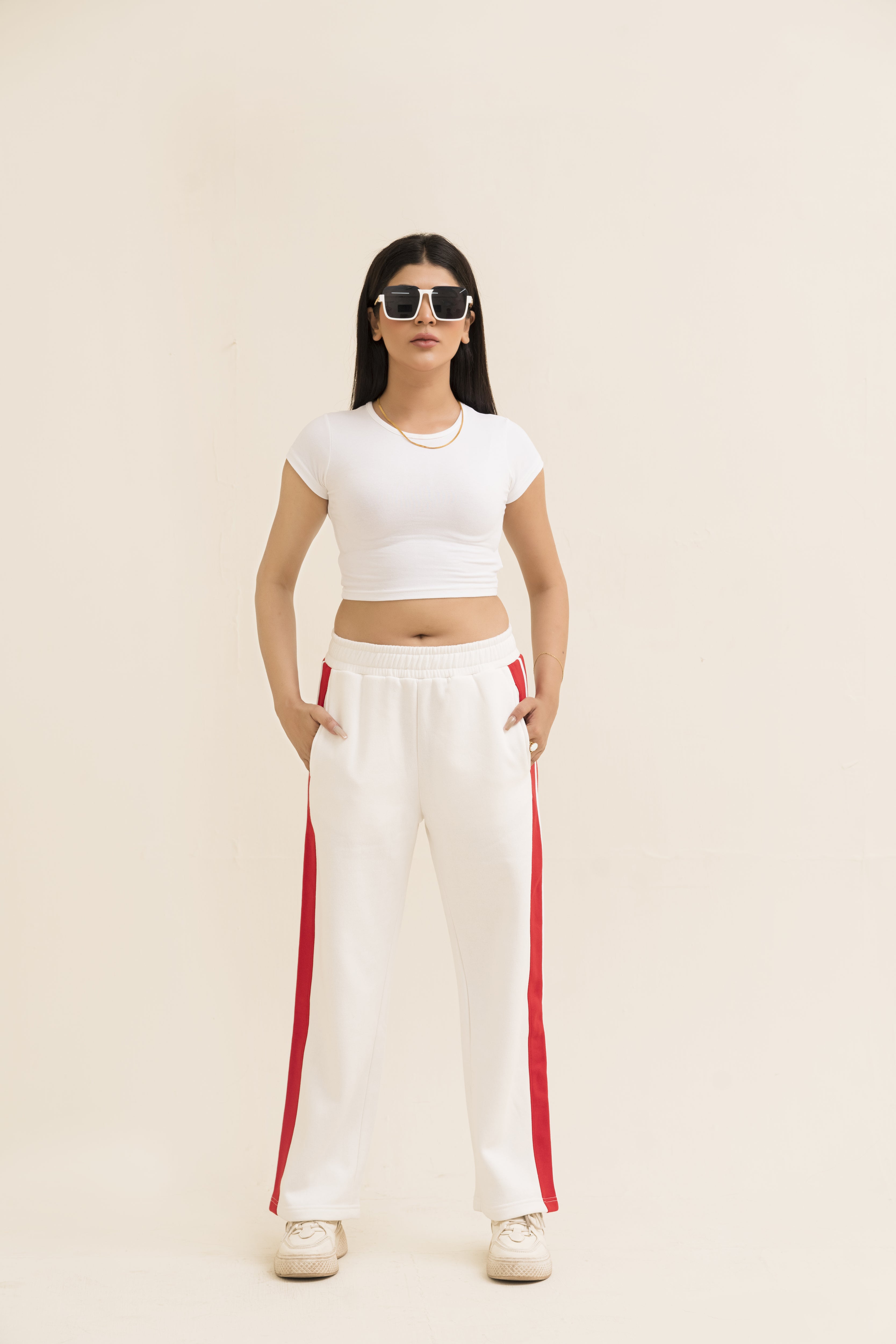 Expertly crafted from warm and cozy fabric, these White Straight-Leg Trousers with Stripe are perfect for winter wear. They are...