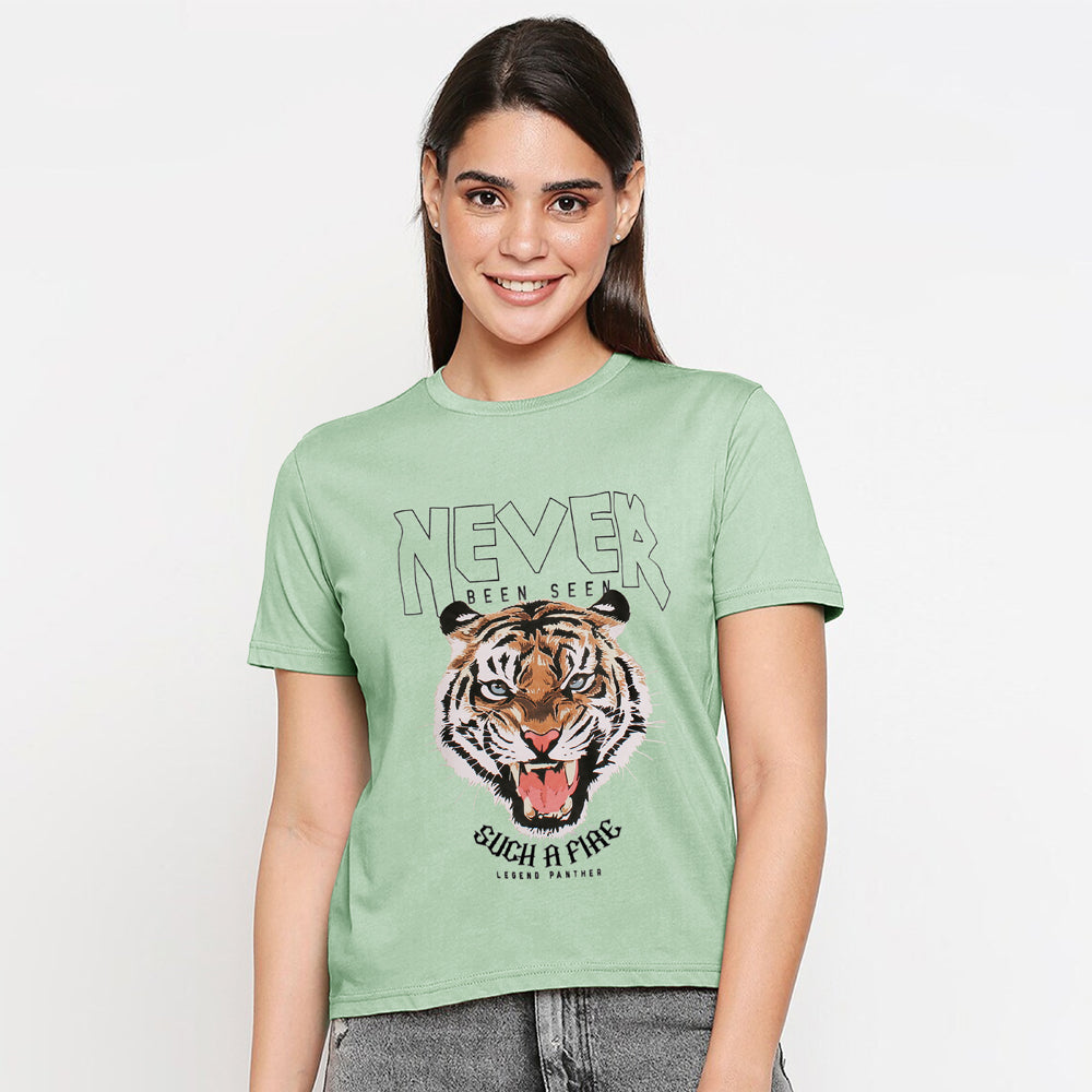 Fabric: Cotton Stay comfortable and stylish with our Never Tiger Print T-shirt for Ladies. Made with lightweight cotton summer fabric,...