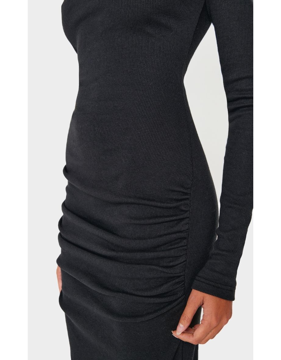 2650-Ribbed Ruched Detail Long Sleeve Maxi Dress
