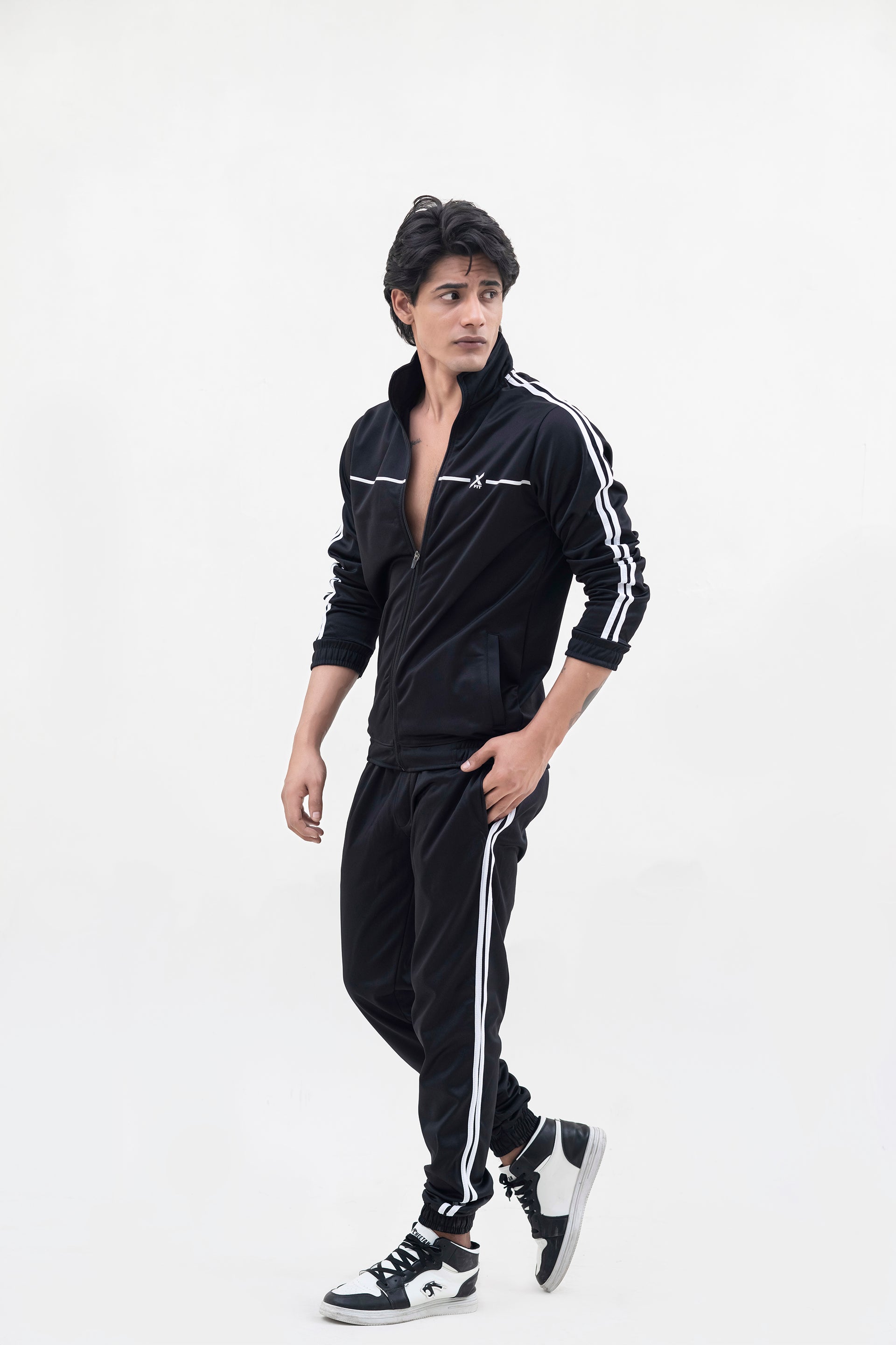 X-Fit White Stripes Full-Zip Tracksuit For Men-2585-Black