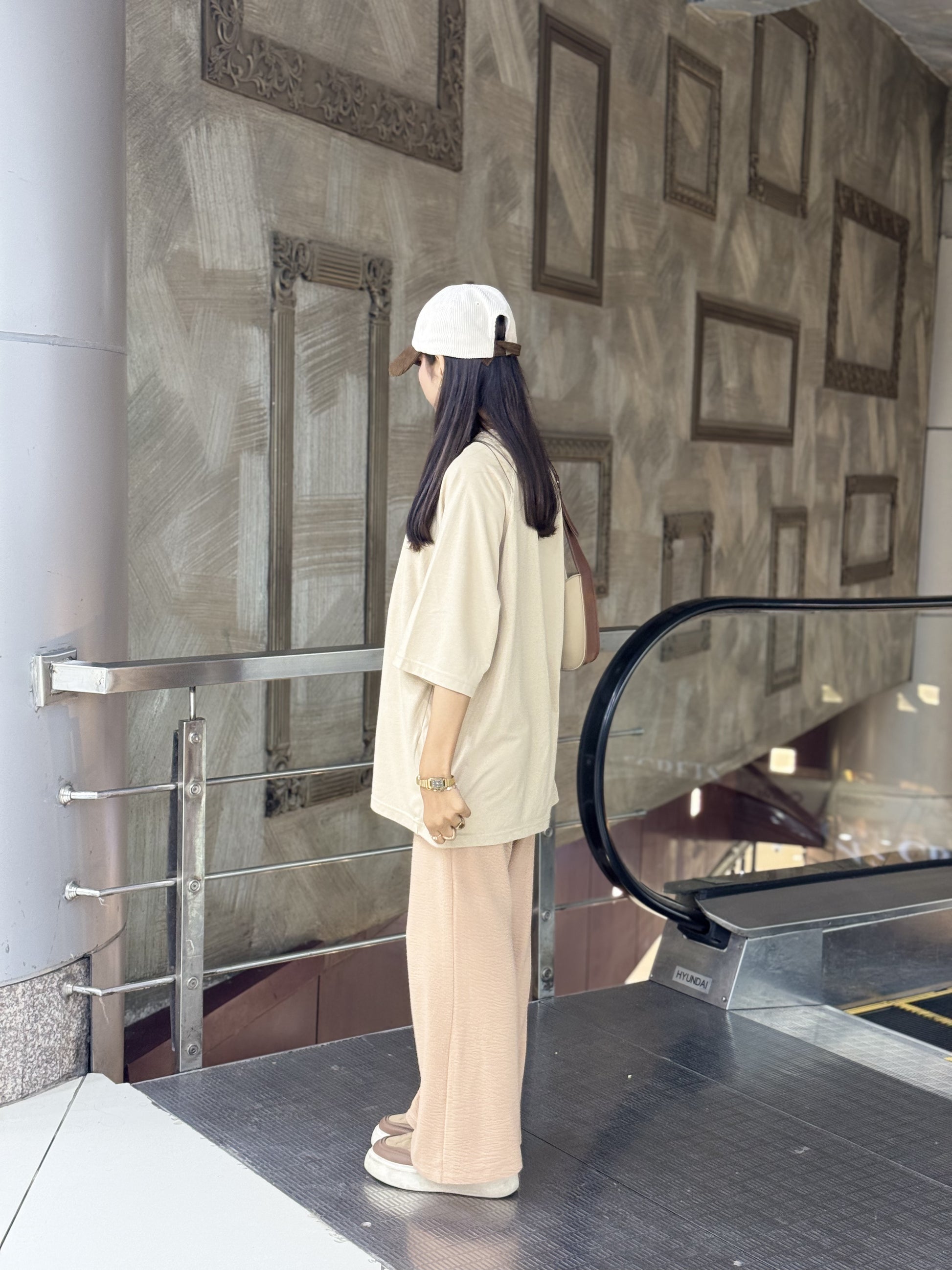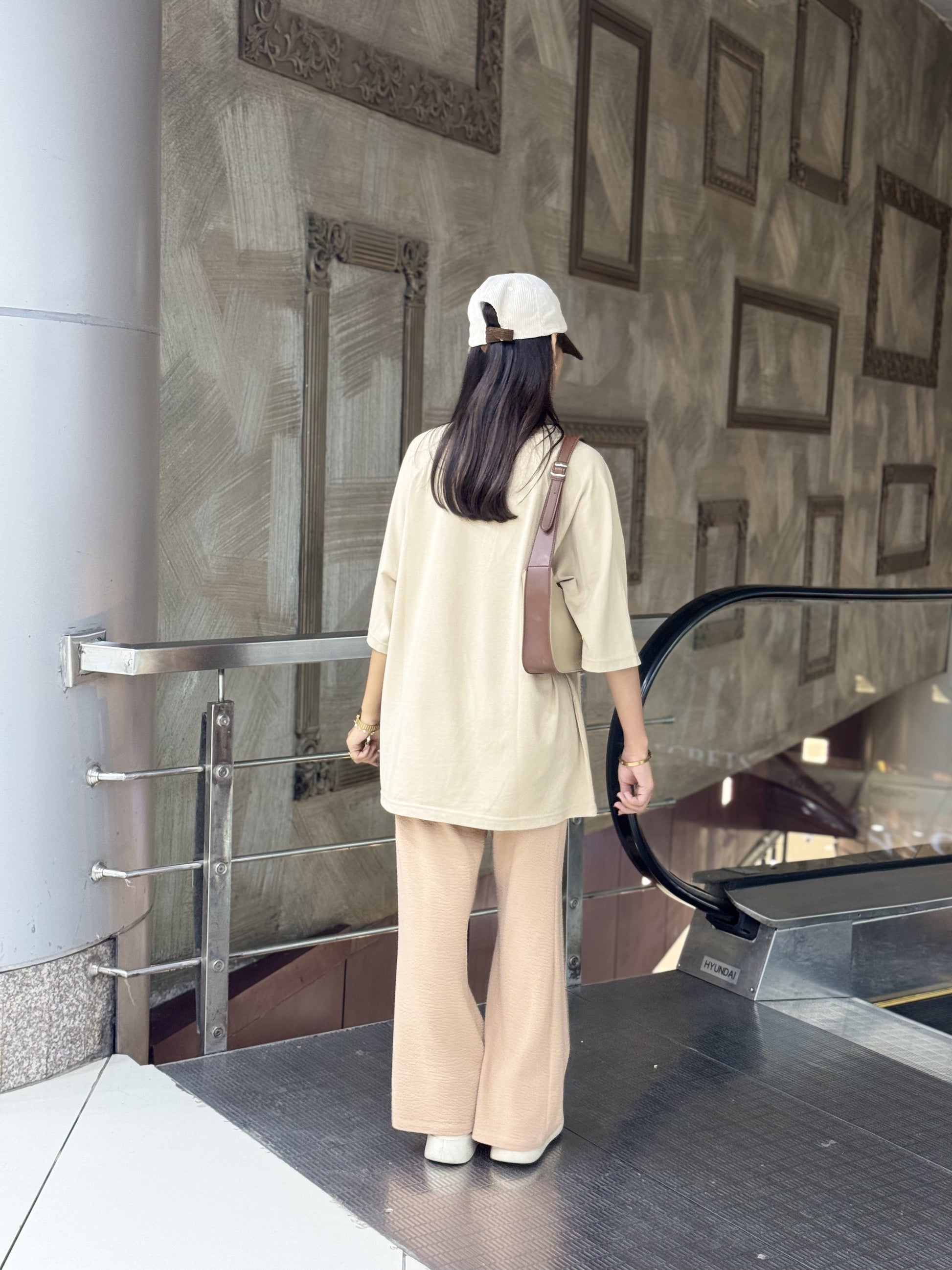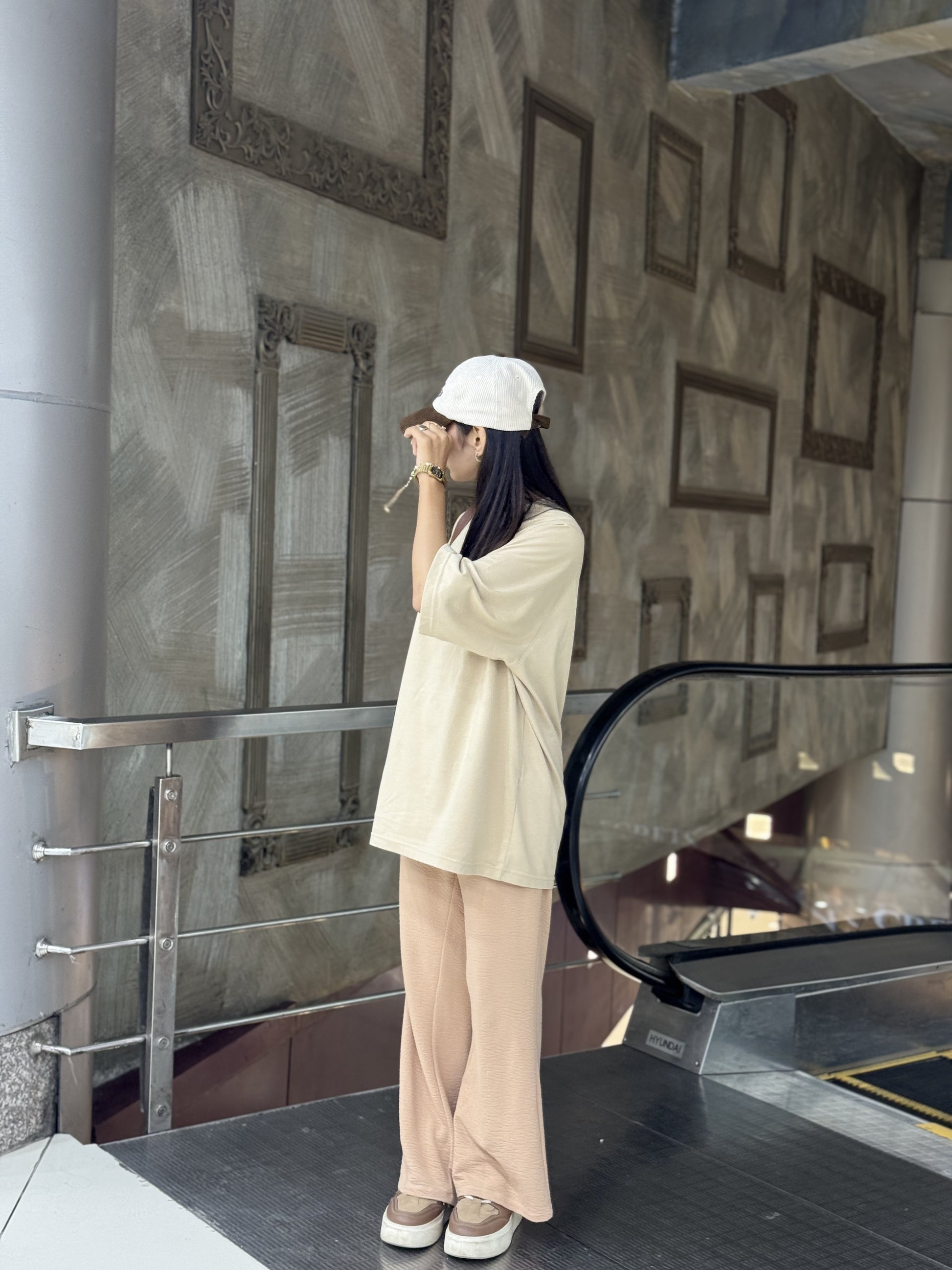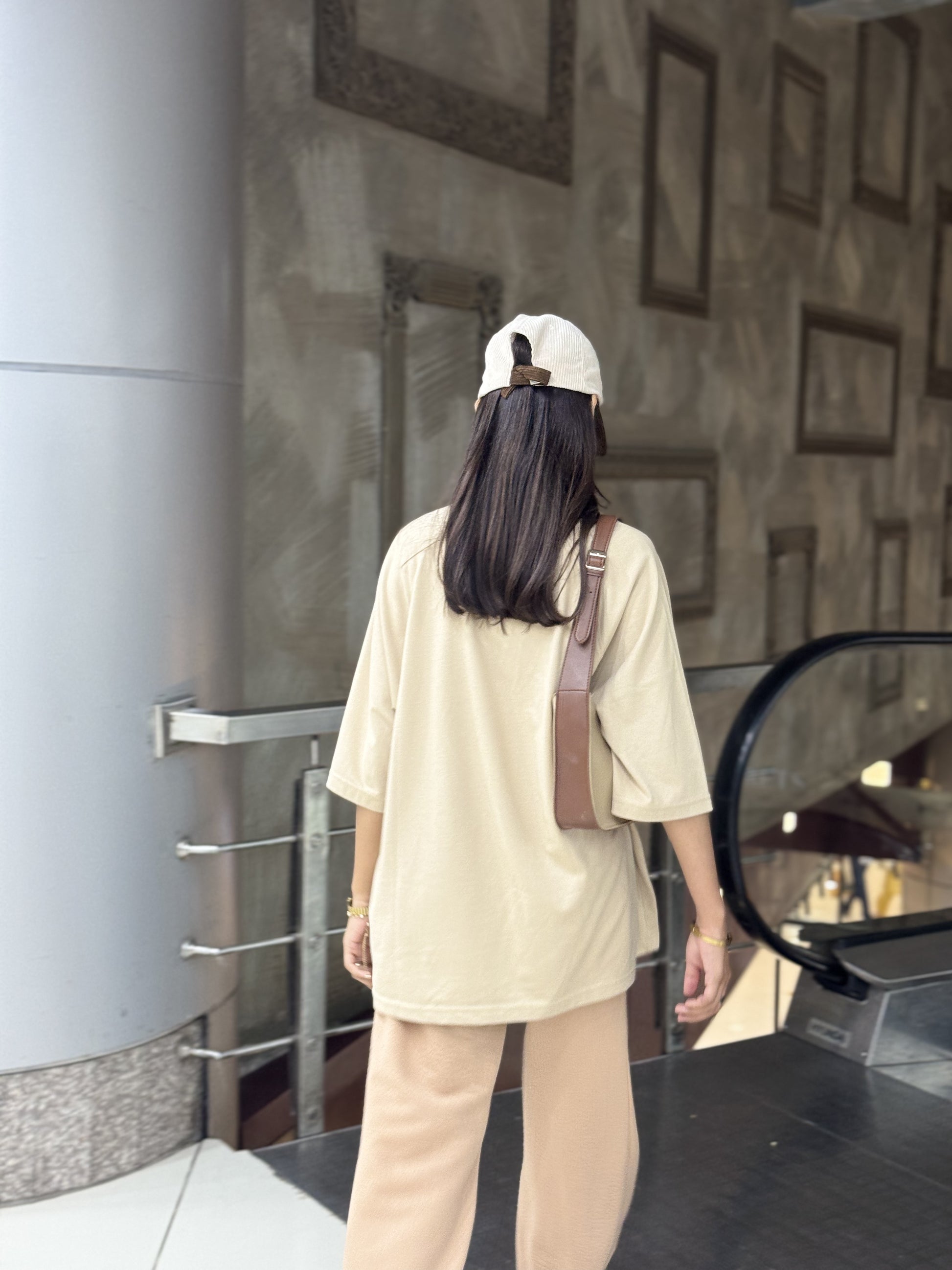 2700- Raglan Sleeve Oversize Plain T Shirt Women-Beige