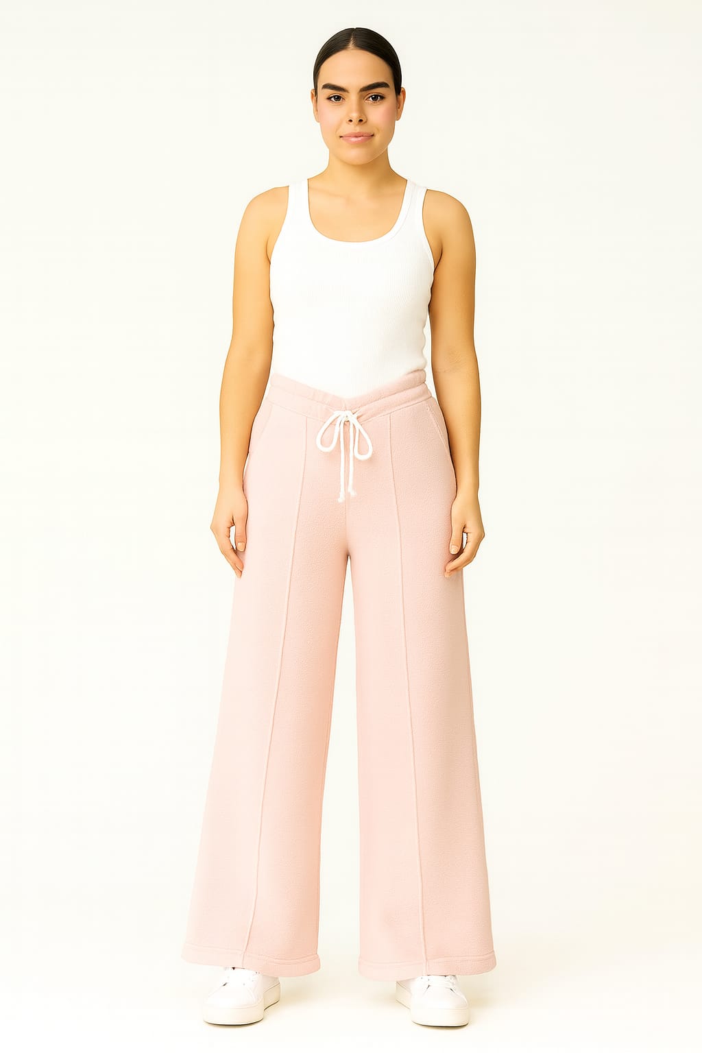 Crafted from soft fleece fabric, these trousers provide exceptional warmth and comfort for winter wear. Featuring a flattering V-shaped belt and a stylish front pleated design, they combine functionality with a tailored look. Ideal for colder seasons, they offer both insulation and a refined silhouette, making them a smart choice for women seeking cozy yet elegant winter attire.