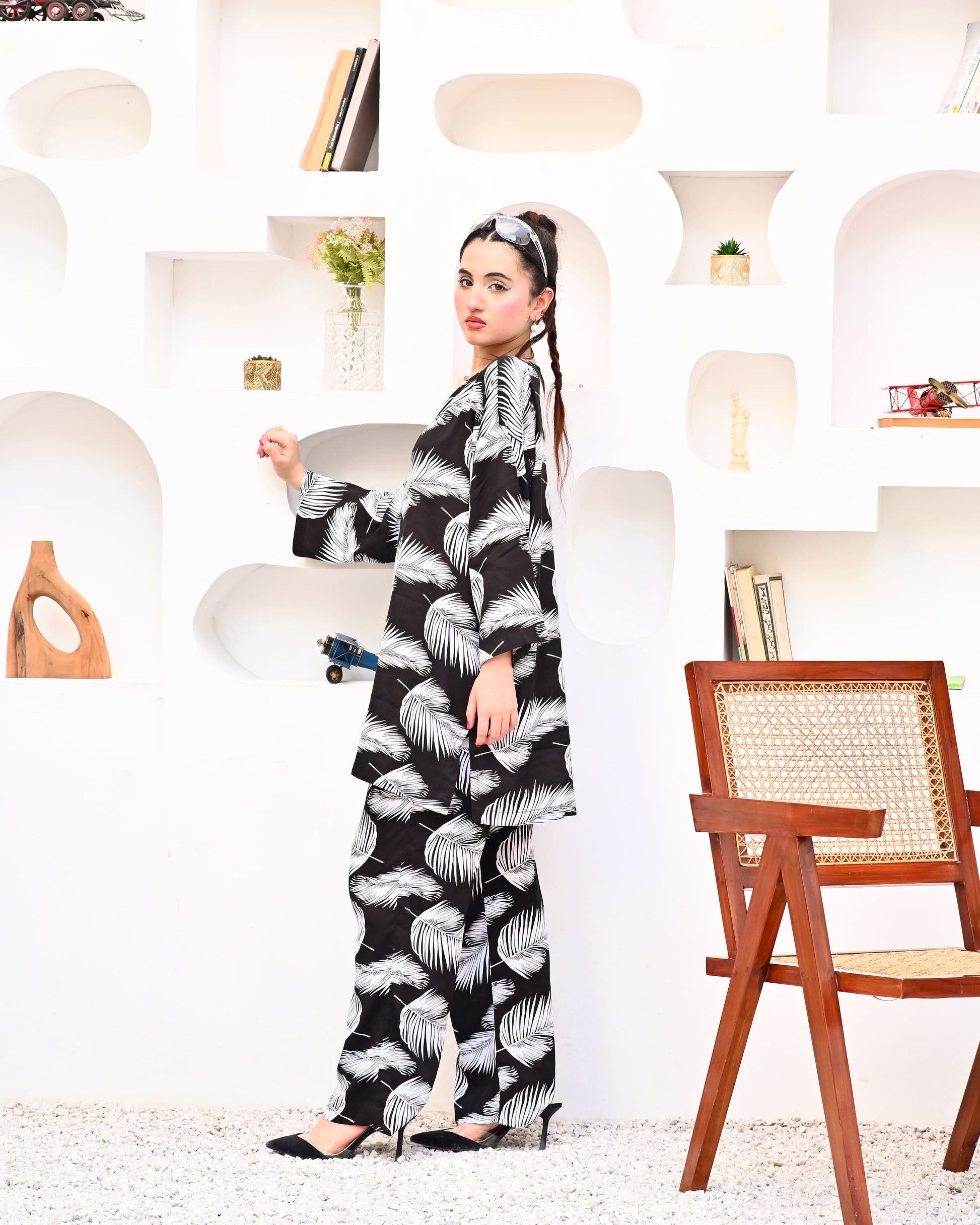 East West Crazy Age Printed Co-ord Set -2491-LF-Black