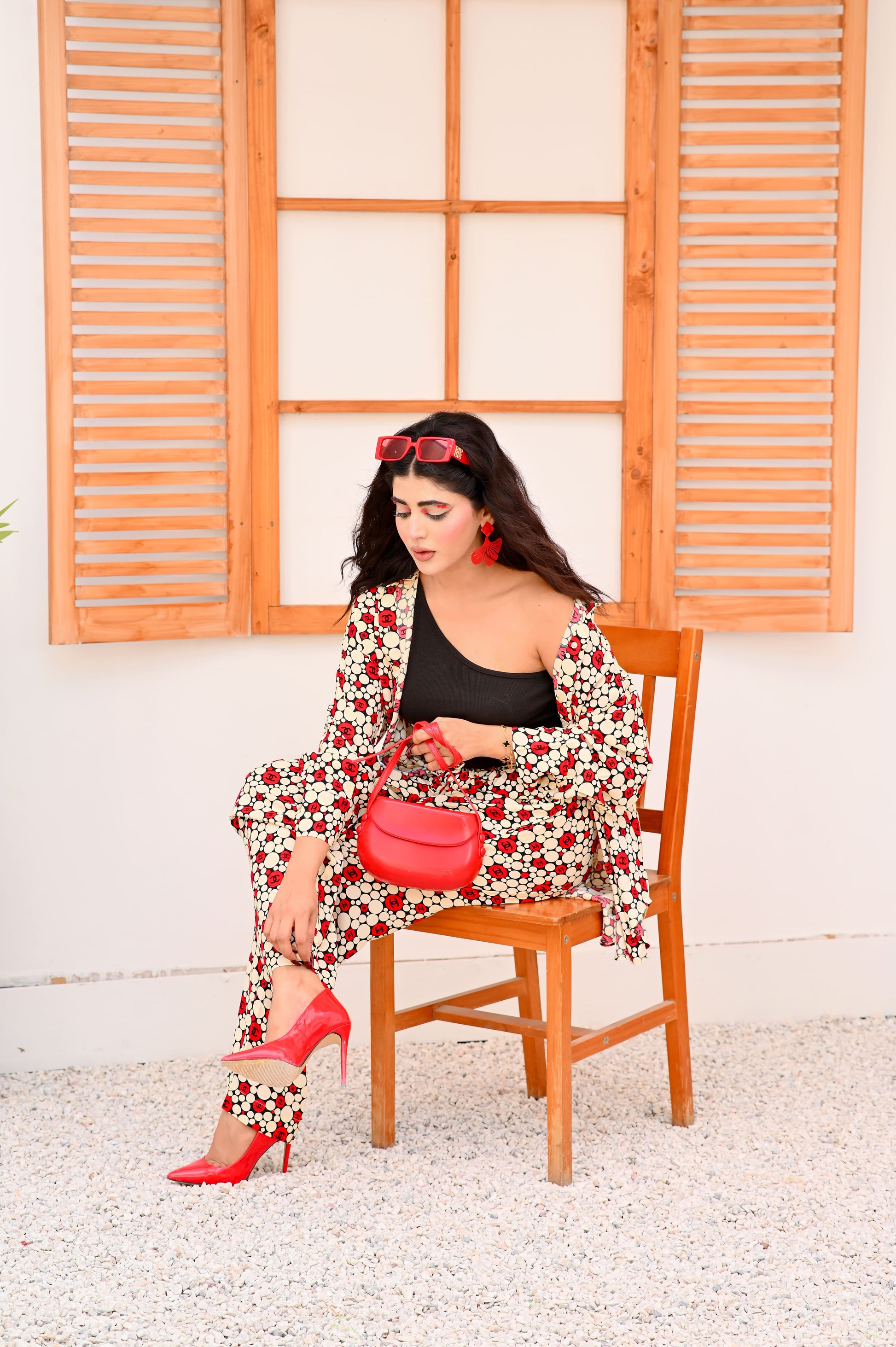 East West Crazy Age Printed Co-ord Set-2491-Red