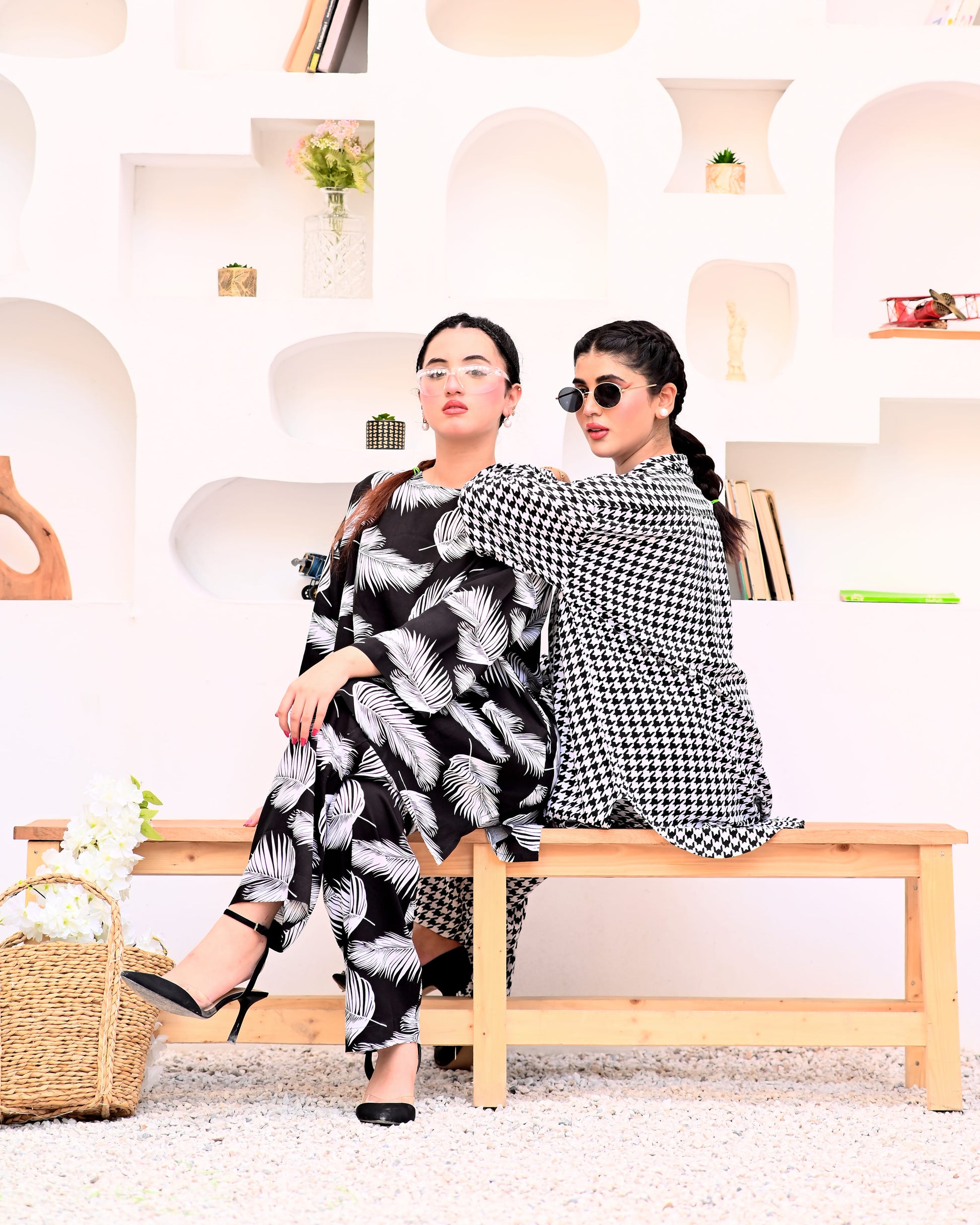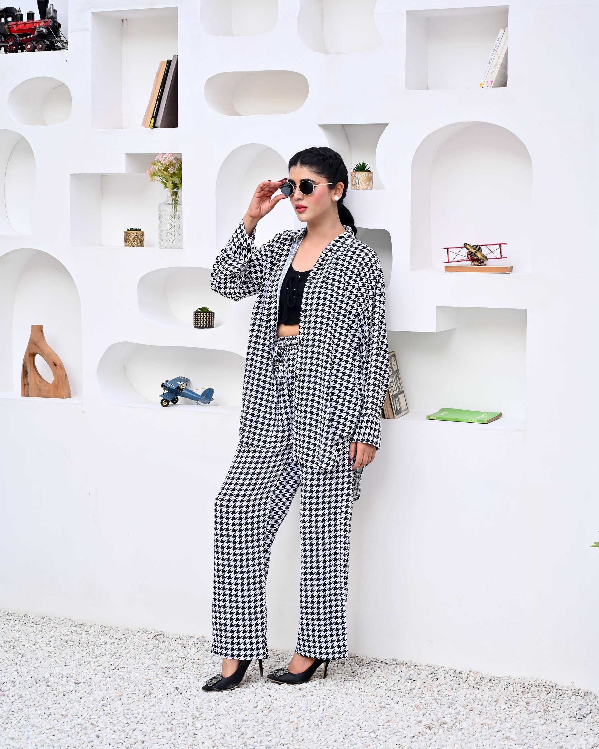 East West Crazyage Hound Tooth Co-ord Set For Women-2491-Black White