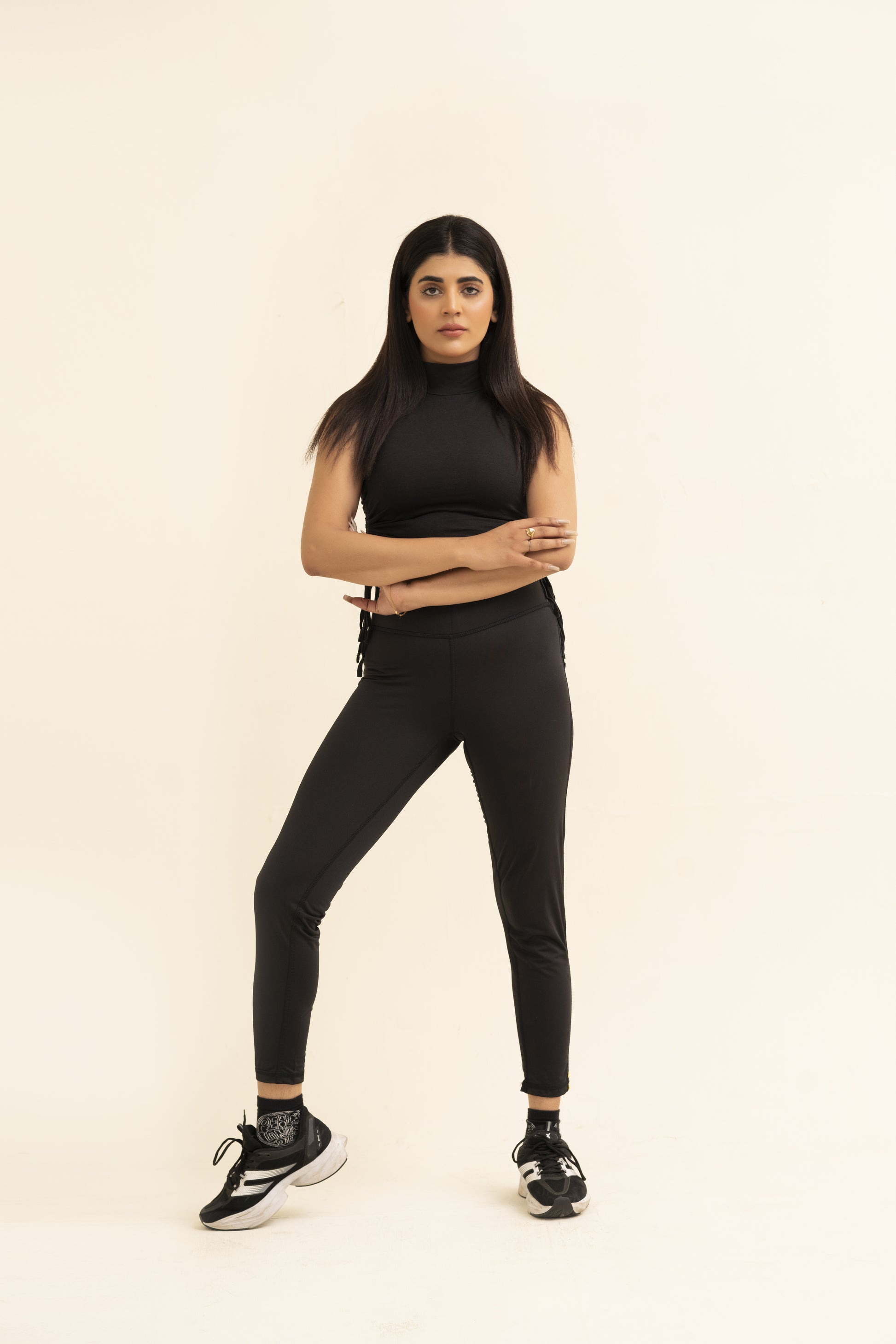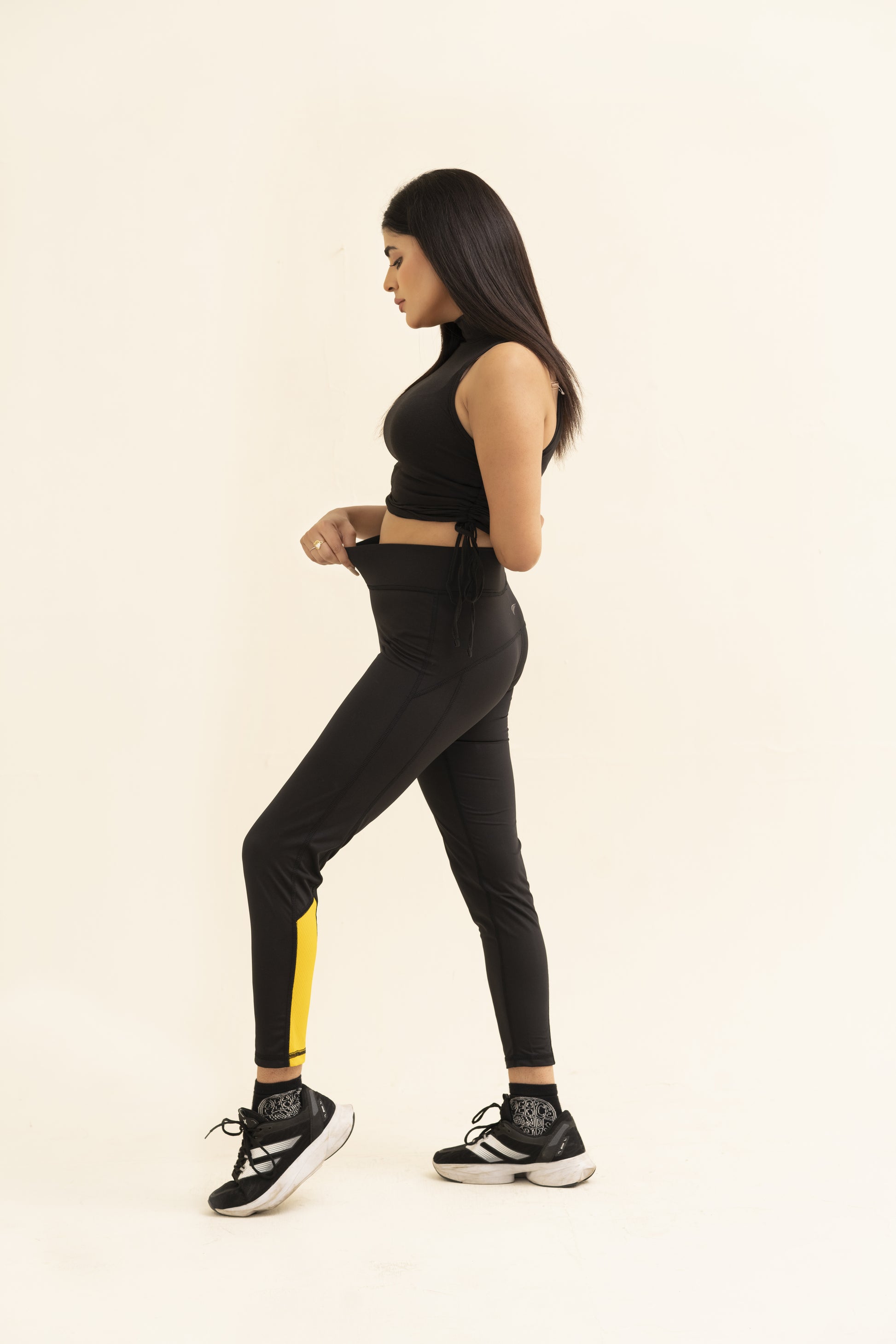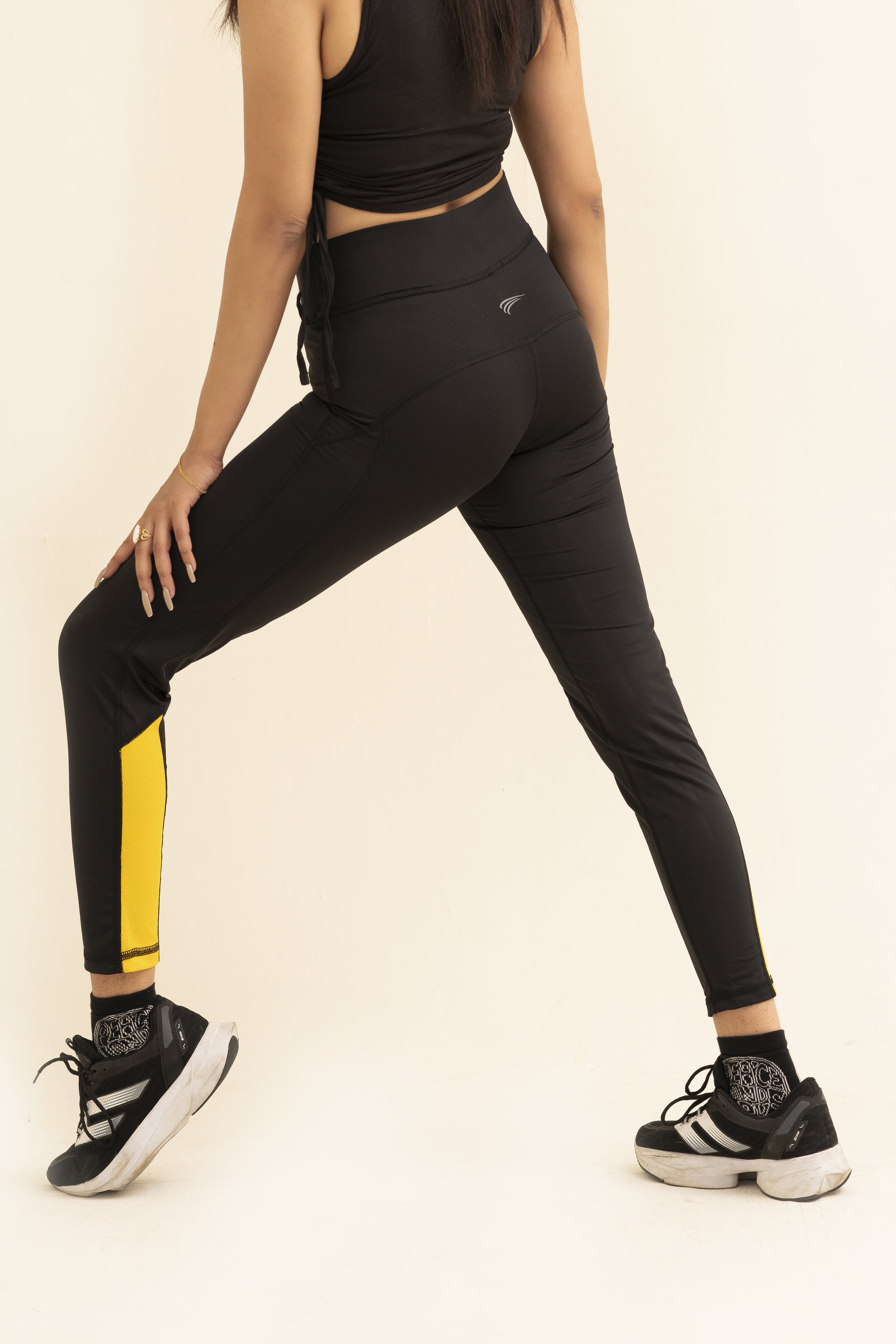 Falcon Activewear Leggings For Gym/Yoga-2517-Black Yellow