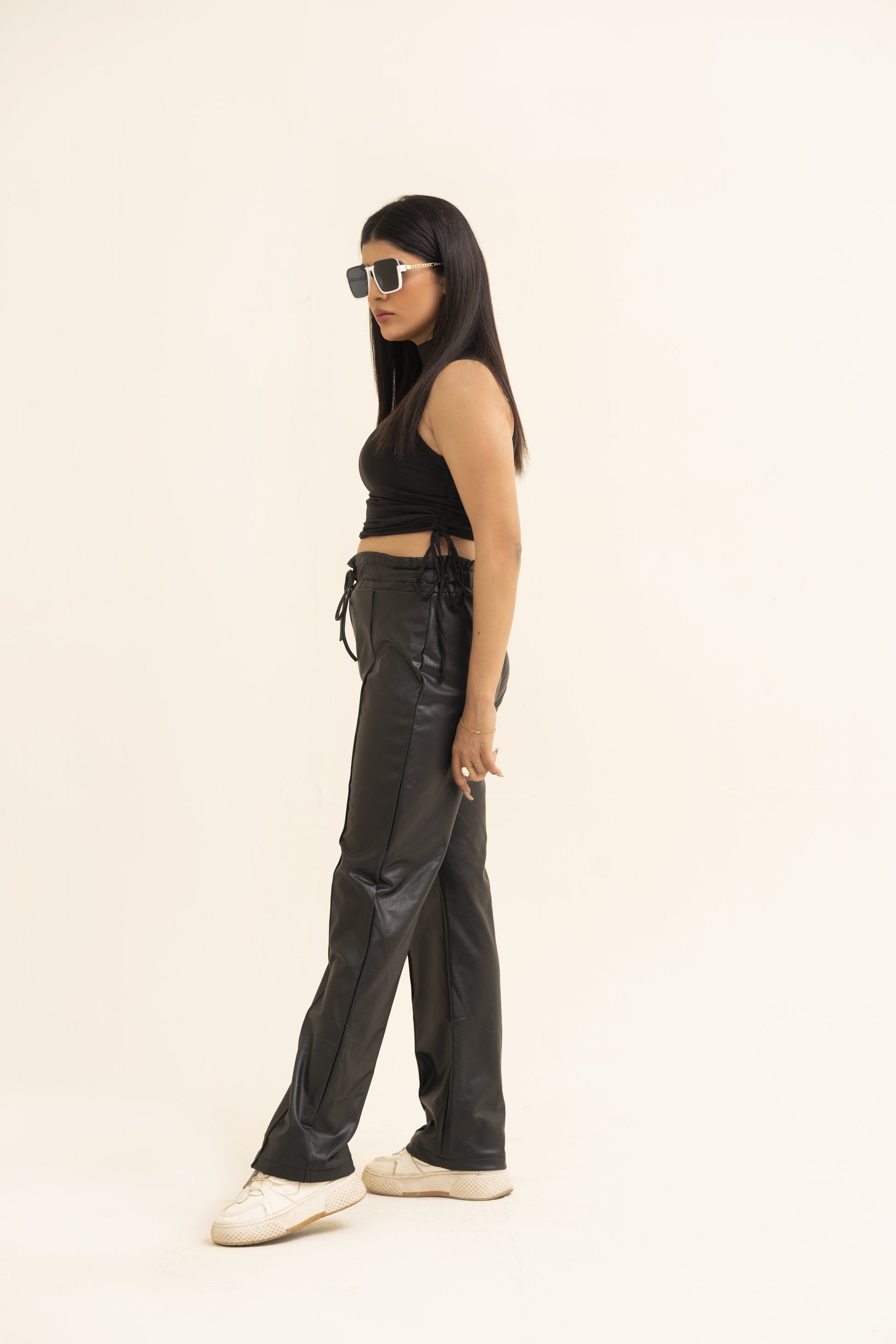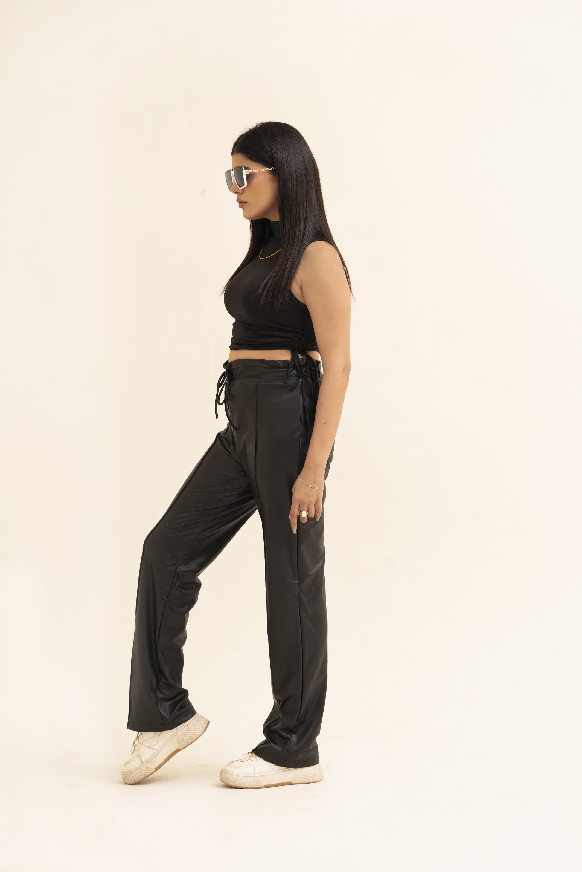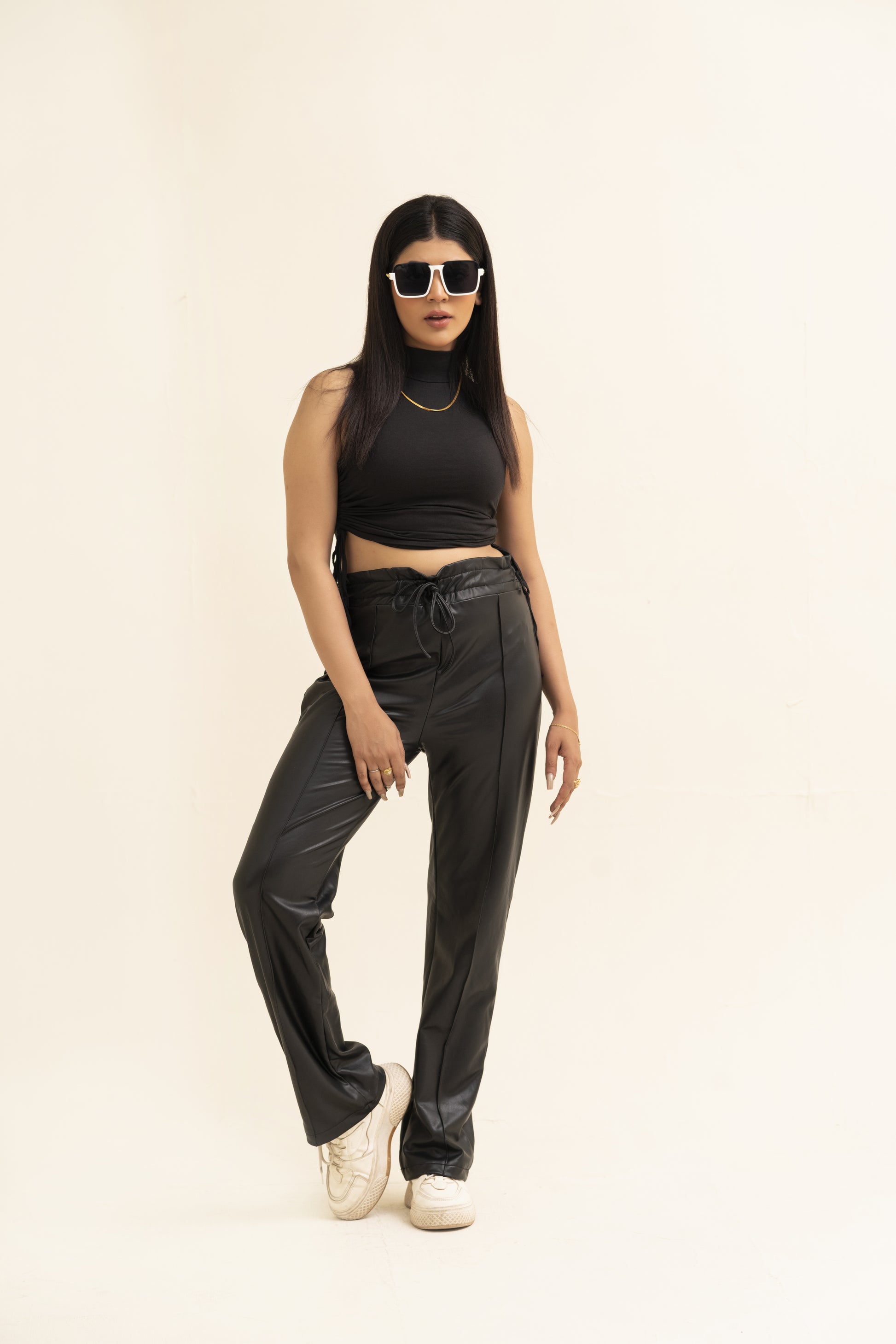 Elevate your party look with our Pleated Faux Leather Pants. Made for women who want to make a statement, these pants are crafted from faux leather for a sleek and edgy vibe. The pleated design adds texture and a flattering fit to your ensemble. Stand out in style with these must-have pants.