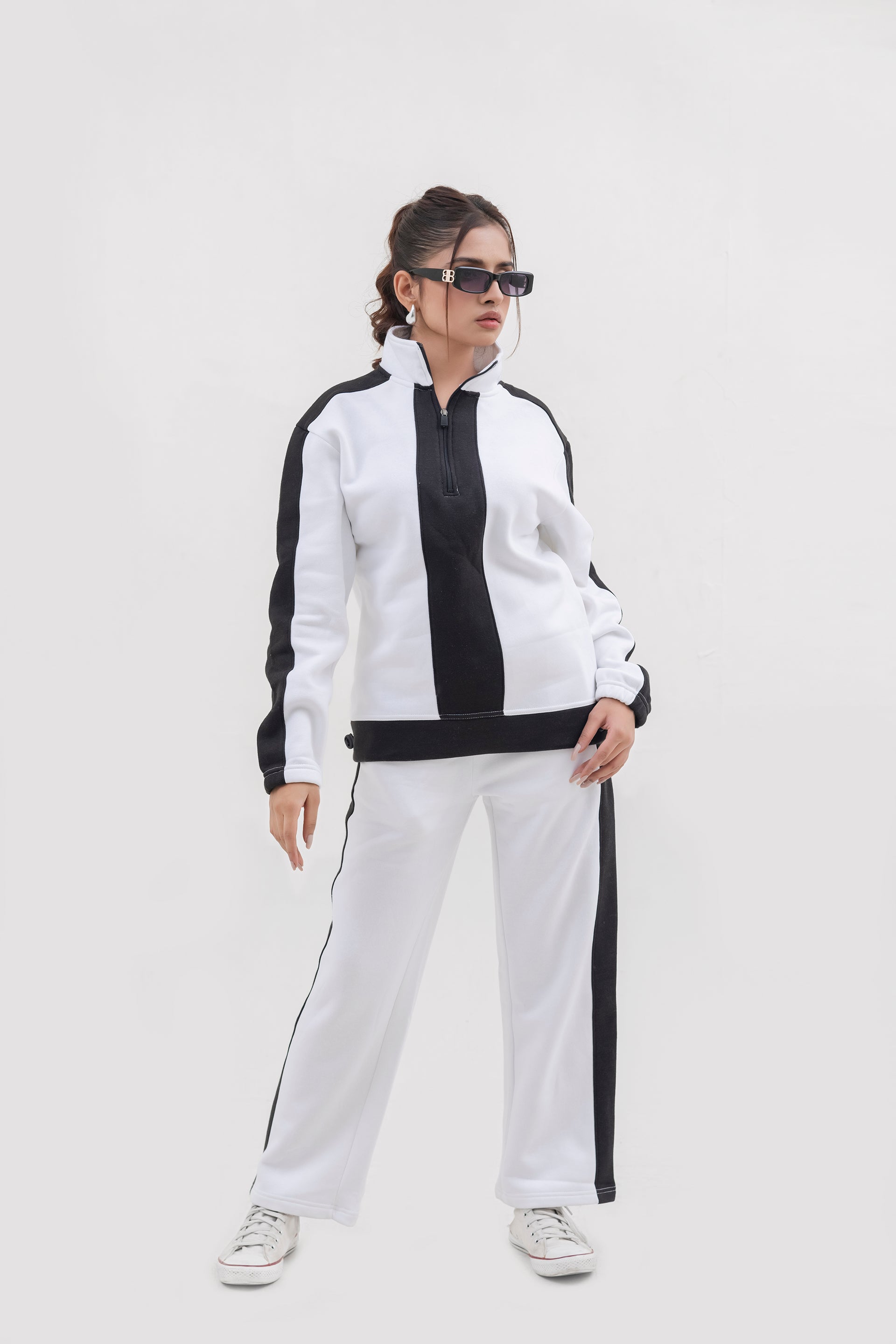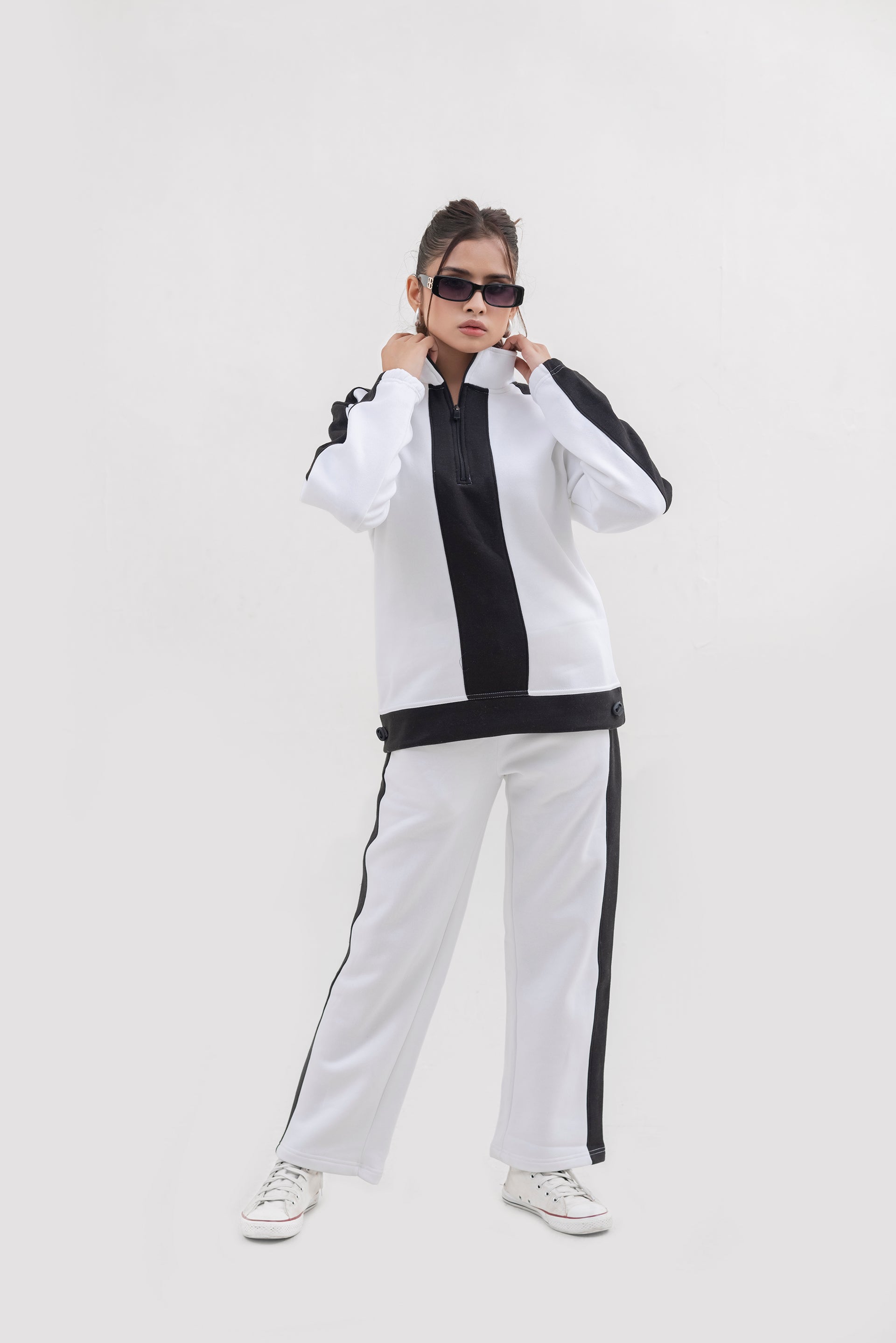 Refined simplicity meets athletic functionality in this tracksuit with a quarter-zip top. Designed with premium lightweight fabric, it ensures breathability and comfort for any activity. The slim-fit design offers a flattering silhouette, while the quarter-zip top adds a modern edge. Paired with matching pants featuring an elastic waistband, this set is perfect for both active and casual days. Elevate your wardrobe with this versatile and stylish tracksuit.