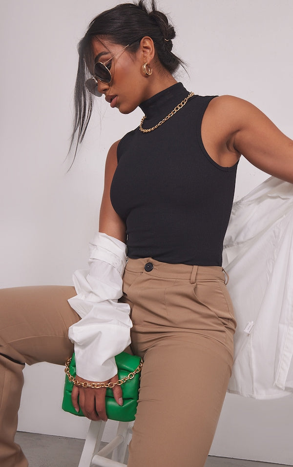 PLT Rib High Neck Sleeveless Bodysuit-2319-Black