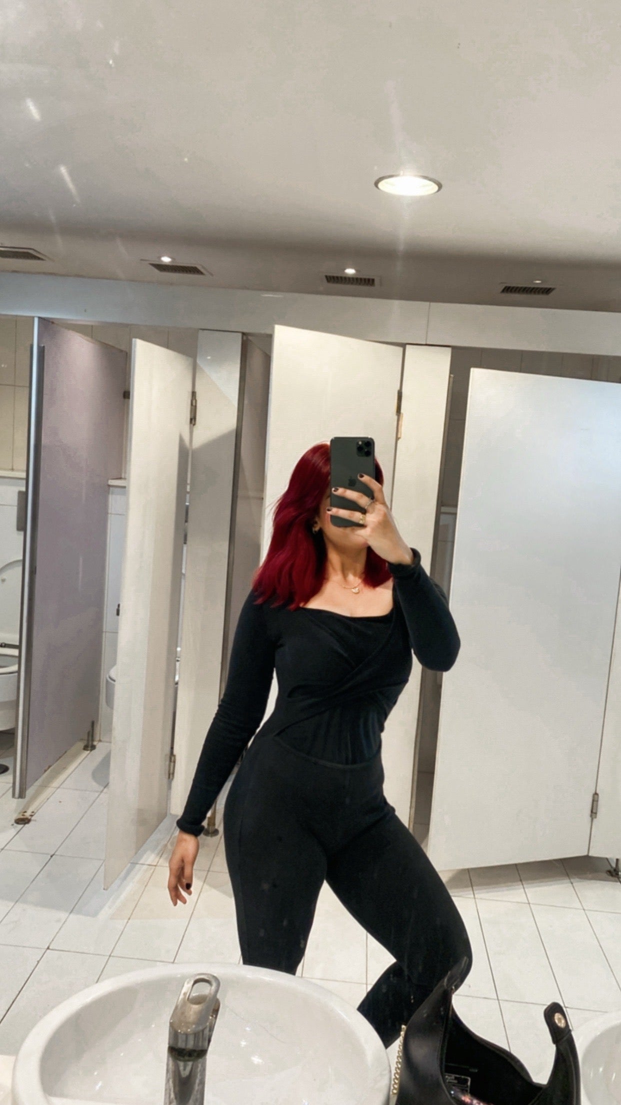 Show off your shape in this figure-worshipping jumpsuit. Featuring ribbed material with a cross over detail and long sleeves, style this with clear heels, a gold chain and black micro bag for a look we're loving.