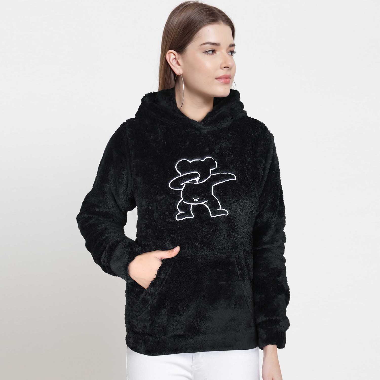 Teddy Bear Embroidered Furr Sherpa Hood For Women-2303