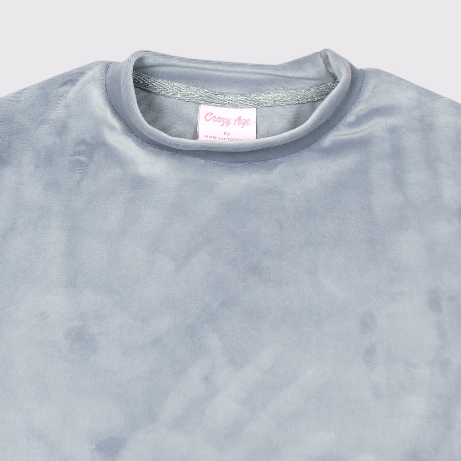 Velvet Crew Neck Tracksuit For Women-2354-Grey