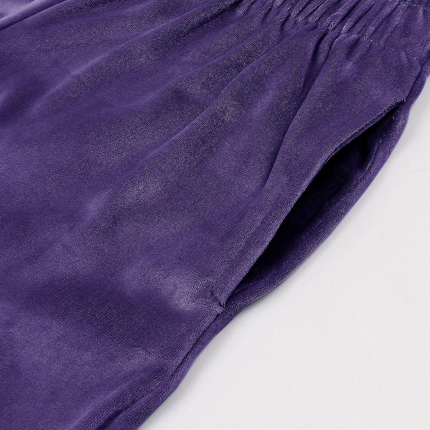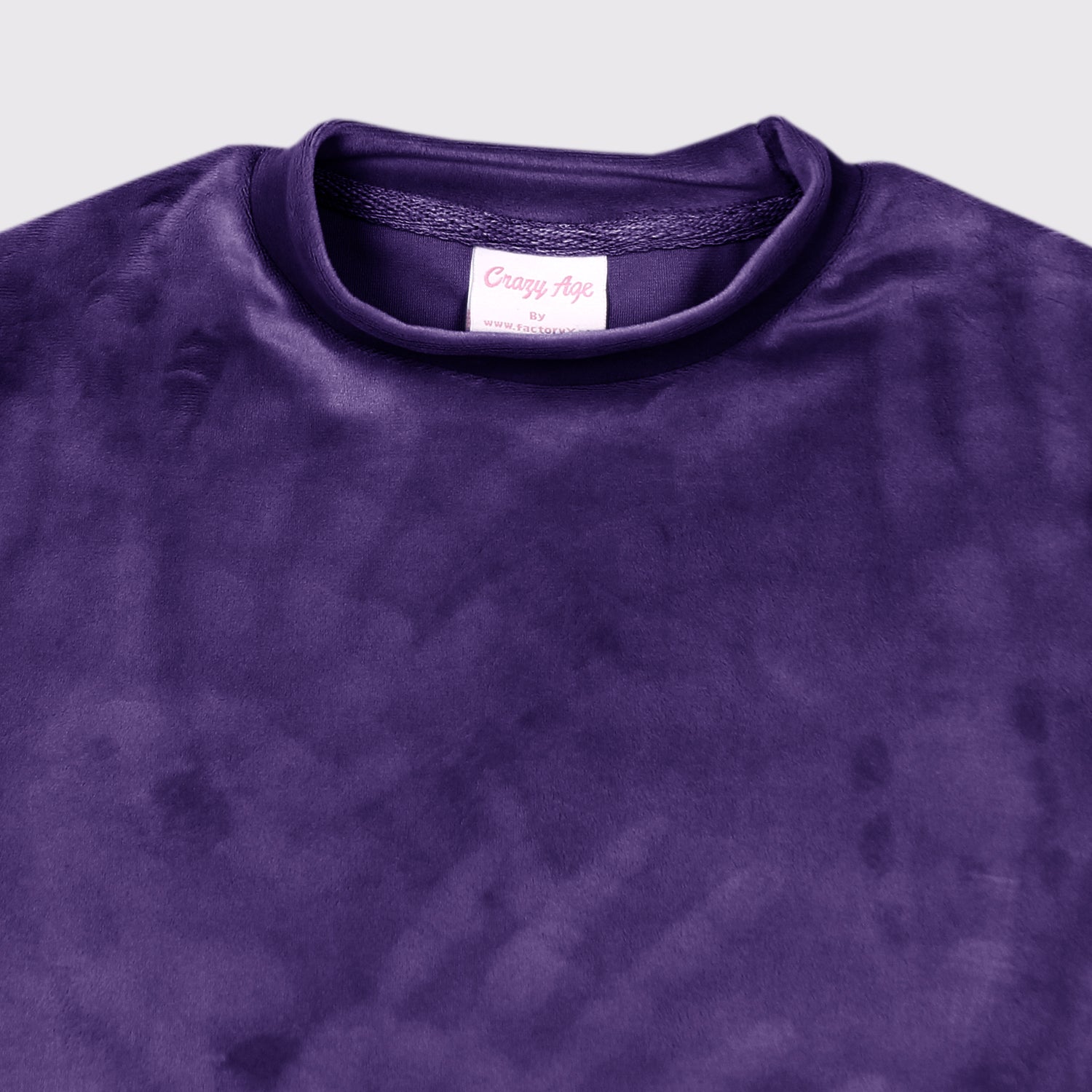 Velvet Crew Neck Tracksuit For Women-2354-Purple