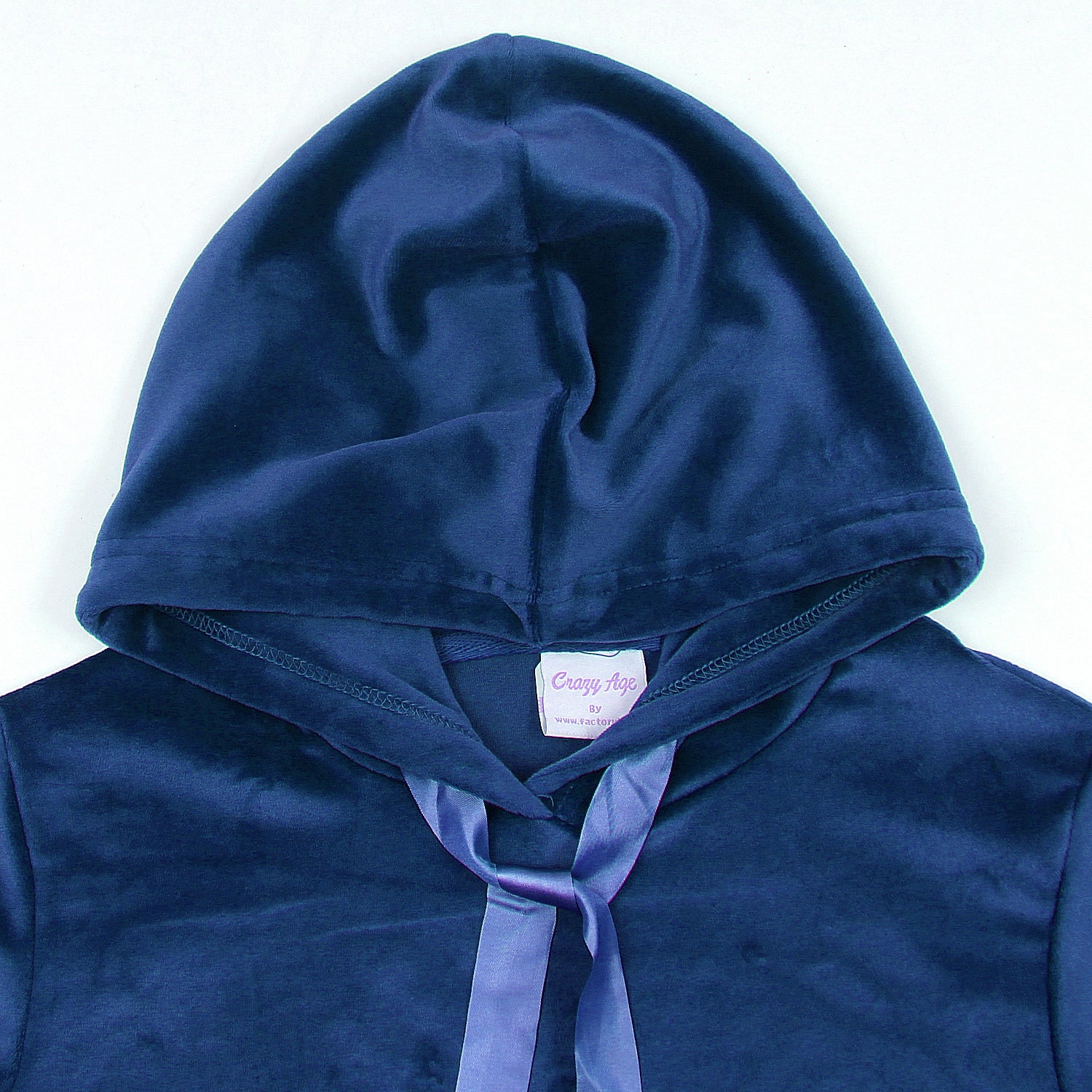 Velvet Pullover Hood Tracksuit For Women-2354-Royal Blue