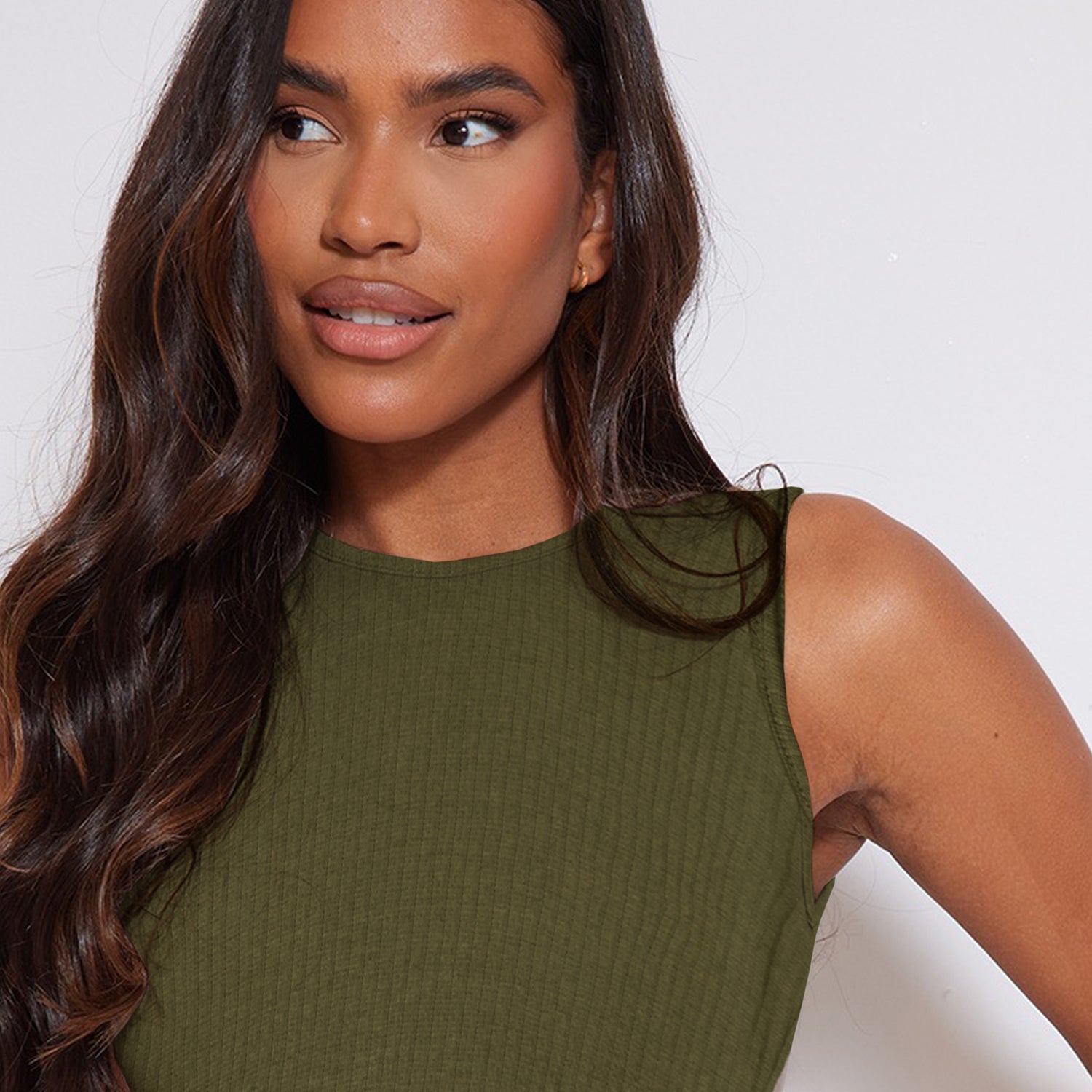 Strip Rib Spaghetti Strap bodysuit-2417 -PLT-Grey
